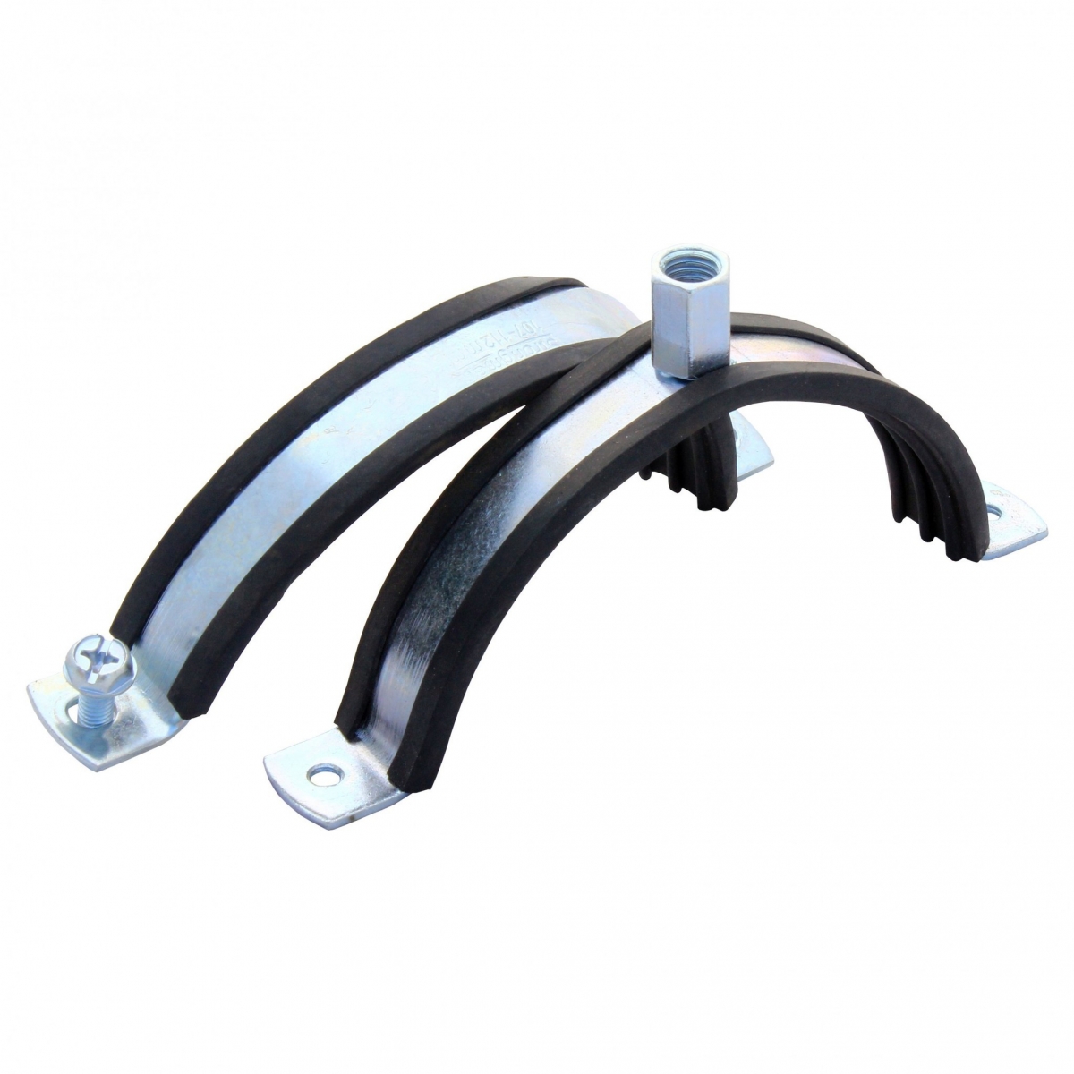 Оцинкованные хомуты для крепления воздуховодов с резиновым профилем имеют специальную резиновую подкладку и этим отличаются от обычных хомутов. Резиновый профиль позволяет не только уменьшить вибрацию, которая передается от воздуховода на крепеж, но и значительно снизить общий уровень шума в помещении, где проходит вентиляционная трасса. Резиновый профиль надежно закреплен в хомуте и не выпадает при монтаже и подвижках воздуховода во время дальнейшей эксплуатации.