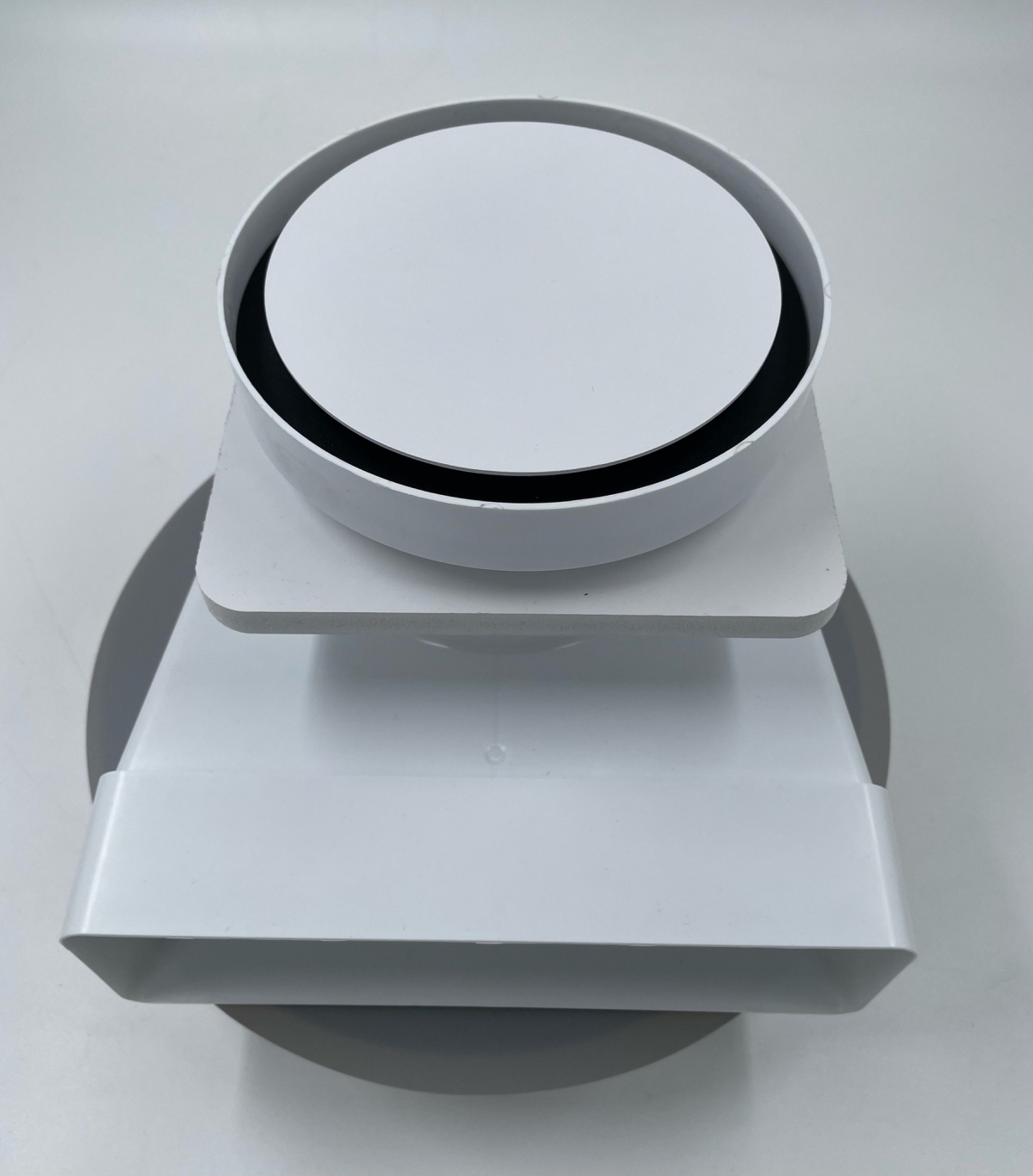 - Подходит для вентиляционных каналов 100 и 125 мм, а также для прямоугольных каналов 60*120мм и 60*204 мм через переходник.